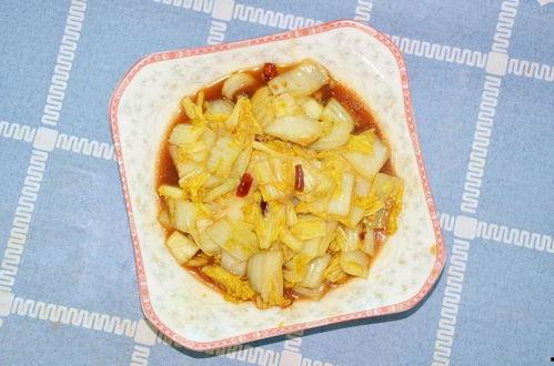 1. 准备食材:新鲜的白菜、干辣椒、蒜瓣、醋、生抽、盐、糖等。