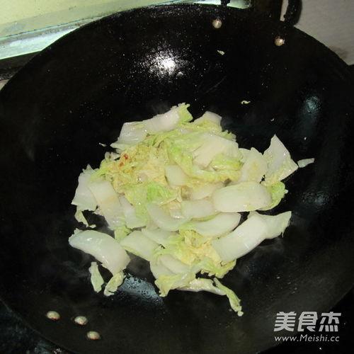 2. 白菜处理:将白菜洗净,切成细丝,放入开水中焯水,捞出备用。